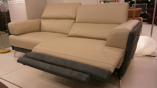 こちらは、レッグタイプの革張りの電動リクライニングソファです。